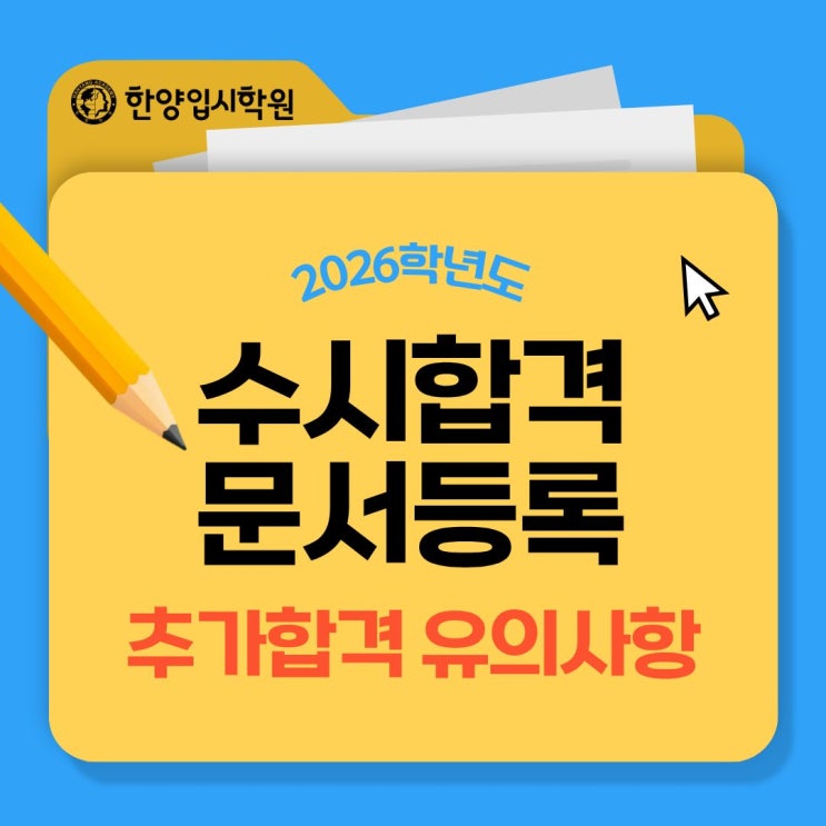 안녕하세요 동래한양학원입니다 오늘은 수시 합격 후 문서등록 방법 및 추가합격 후 유의사항에 대해서 안내해드리겠습니다^^ 수시 합격 후 문서등록 (예치금 납부) 예전에는 수시 합격 후 예치금납부가 대부분이였으나 최근에는 대부분의 대학이 문서등록으로 진행하고 있습니다. 문서등록을 하는 이유는 대학 합격자가 대학에 등록을 하겠다는 의사를 밝히는것입니다. 대학에서는 문서등록을 통해 남은 인원을 추가합격자를 통해 선발 할 수 있으므로 반드시 최초합격한 대학에 1곳에는 문서등록을 완료하셔야 합니다~ 최초합한 대학이 2개 이상일 경우에도 반드시 1개의 대학에만 문서등록을 하셔야 하며 2개의 대학에 문서등록을 하실 경우 이....... <img src="https://blogthumb.pstatic.net/MjAyNTEyMTdfMTY2/MDAxNzY1OTMzNzkyMTMz.iy74GfkbZTB8sBRJIwcxWtVnDy4jvHF0SWwbO4Bmg4Qg.NdQ9e7Nj_B2NYwN-9fkjGM4q7JHmWSmTDMMMPdOTbHcg.JPEG/%BC%F6%BD%C3%C7%D5%B0%DD_%B9%AE%BC%AD%B5%EE%B7%CF.jpg?type=s3" />