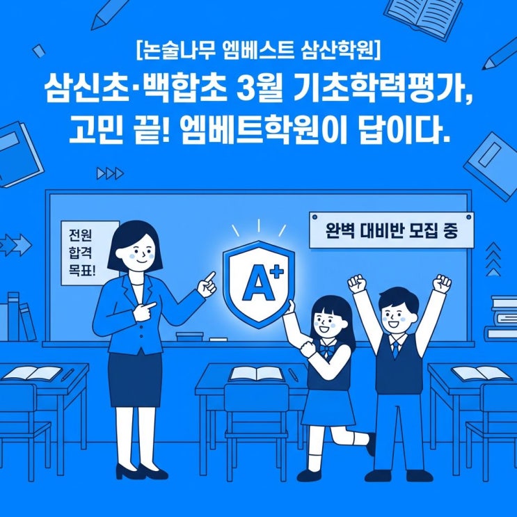 [논술나무 엠베스트 삼산학원]삼신초 백합초 3월 기초학력평가, 고민하지 마세요! 엠베스트학원이 답을 드립니다.
