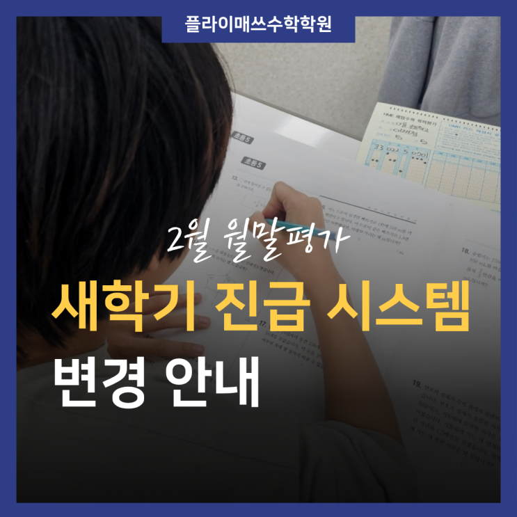 우리아이에게 딱 맞는 옷! 2월 월말평가 & 진급시험 시스템이 바뀝니다 우리 아이의 수학에 ‘날개’를 다는 법 : 2월 월말평가 및 시스템 개편 안내 안녕하세요, 아이들의 무한한 가능성을 믿는 해오름마을수학학원 플라이매쓰 날개쌤이에요^^ 그림으로 그리리는 서술형 특강, 커피러시 대회로 서울대 진출, 그래비트랙스 개강 등등... 파주의 추운 겨울을 녹이는 플라이매쓰의 열기였습니다 이제 방학 진도를 마무리하며 그동안 쌓은 지식이 아이의 진짜 실력이 되도록 ‘깊이 있는 다지기’를 시작하려 합니다. 플라이매쓰가 고민 끝에 준비한 새로운 비행 준비(시스템 개편) 소식을 전해드립니다. ️ 왜 ‘진급 시스템’으로 바뀌나....... <img src="https://blogthumb.pstatic.net/MjAyNjAyMTFfMjc5/MDAxNzcwODE4OTI1ODI1.vkJTY5y9E8P9vbE-MOtHVykI4NGv7GhRSHPzmQWKW0Mg.1FYRXW62TyCK43FsZ-PM-m9a0Q1TTTKcJEogBr3dDwYg.PNG/1.png?type=s3" />