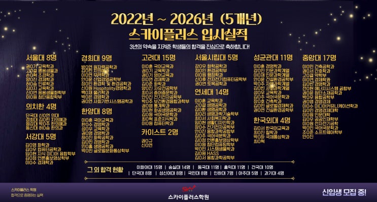 2022년 ~ 2026년 (5개년) 스카이플러스 입시실적