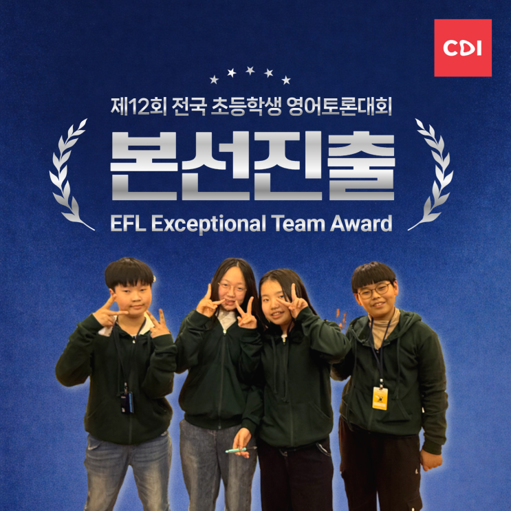 YTN • 한국외대 주최 제12회 전국 초등학생 영어토론대회 본선 진출 EFL Exceptional Team Award 단순 참가가 아니라, 전국 단위 무대에서 실력으로 증명한 결과라 더욱 의미 있는 성과입니다. 수상 학생 성시연 (부천 계남초 6) 박소민 (부천 계남초 5) 이서준 (부천 계남초 5) 한시현 (인천 한일초 5) 네 명 모두 각자의 역할을 완벽히 수행하며 팀워크와 논리 전개, 전달력까지 고르게 인정받았습니다. 부천청담어학원에서는 스스로 사고하고, 논리적으로 표현하고, 상대의 의견을 경청하며 반박하는 힘을 기릅니다. 더 단단한 실력으로 성장하는 모습을 보여드리겠습니다 <img src="https://blogthumb.pstatic.net/MjAyNjAyMjNfMTEg/MDAxNzcxODQwMTEwNDgy.OmSUQ5uNHYKYv32FZ4x6HeOD_2FiDVt8-iUFXspaWM4g.05lMCtVG6Ba9g_OjGgkFduzgfxHG9XGiYMSyMpj3_pIg.PNG/%BA%B9%BB%E7%BA%BB_%C1%A6%B8%F1%C0%BB_%C0%D4%B7%C2%C7%CF%BC%BC%BF%E4_%285%29.png?type=s3" />