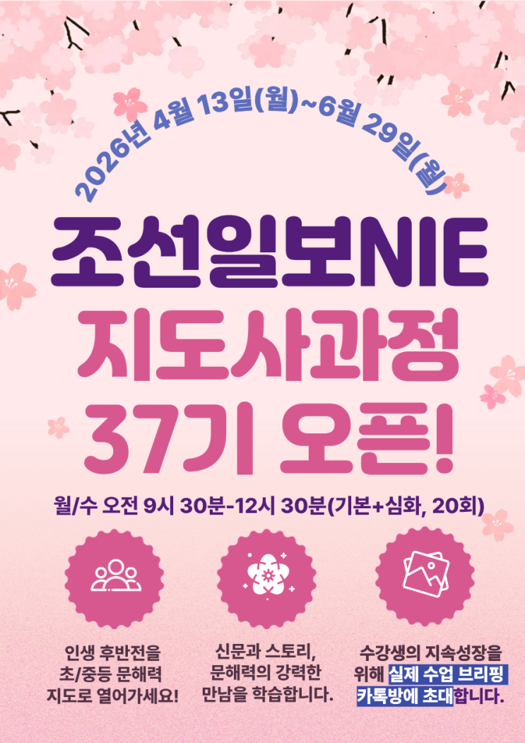조선일보NIE지도사과정 37기 일정 확정(4/13~6/29)