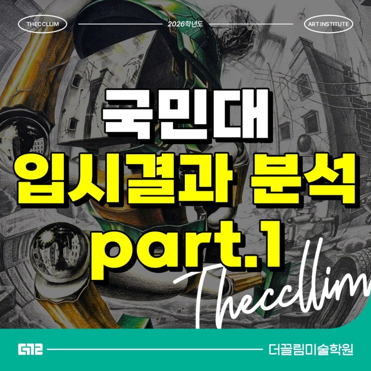 대치동입시미술학원 26학년도 국민대 미대 입시결과 분석 합격을 위한 포인트 짚기! 안녕하세요, 대치동입시미술학원 더끌림 김나래 원장입니다. 이제 추웠던 날씨가 어느덧 풀리고 있는데요. 올해 2026학년도 입시도 이제 모두 마무리가 되었습니다. 다들 원하는 목표에 대한 결과가 있으면 합니다. 본원도 올해 국민대 단일 집중반이 7명 최초합격이라는 좋은 결과가 있었는데요. 이중 고3 학생이 다수 포함되어 있고 백분위가 70프로대의 4등급 학생, 정시특강 기간만 국민대를 진행한 학생들 또한 포함되어 있으며 상당히 높은 합격률을 매해 지켜가고 있는 중입니다. 늘 합격에 대한 정확한 채점 기준과 함께 핵심을 수업하고 있으며 각 학....... <img src="https://blogthumb.pstatic.net/MjAyNjAyMjRfOTQg/MDAxNzcxOTEzNDAwMDcz.AqynJm7Ng0OL9Pgk4K6jTQfKix878EFgFCv82_AijuUg.8OSZOkRBghKzi8-G_5cwSNJGXHw9LecM9c4KSOzfef8g.JPEG/%B4%F5%B2%F8%B8%B2_26_1_%BD%E6%B3%D7%C0%CF_1.jpg?type=s3" />