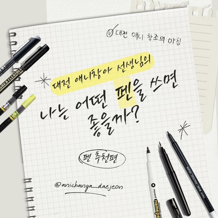 안녕하세요 대전 창조의아침 미술학원 애니반입니다. 만화·애니메이션 입시를 준비하는 학생들과 상담을 진행하다 보면 학부모님과 학생들이 자주 하는 질문이 있습니다. “애니 입시 그림은 어떤 펜으로 그리나요?” “선생님들은 어떤 펜을 사용해서 그림을 그리세요?” 만화애니메이션 입시는 연필 드로잉뿐만 아니라 펜 드로잉 연습도 중요하게 활용되는 경우가 많습니다. 특히 크로키나 드로잉 연습에서는 다양한 펜을 활용해 표현력을 키우기도 합니다. 그래서 오늘은 대전 창조의아침 미술학원 애니반 선생님이 실제로 사용해 본 드로잉 펜들을 소개해보려고 합니다. 애니 입시 드로잉에 사용하는 펜 애니메이션 입시 그림에서는 상....... <img src="https://blogthumb.pstatic.net/MjAyNjAzMTJfMTQ1/MDAxNzczMzA5MDY1MzM0.V8ouv5o5fMCEkpORdiLUwwKhDujP1SB1700A6imD-5Mg.K_V04Zw-lmIPpv2gipDolnHdspBk2ohpCp5sCNAzGEwg.PNG/image.png?type=s3" />
