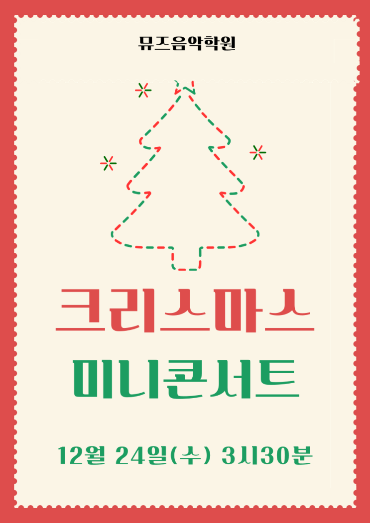 ❤️크리스마스 미니콘서트 12월 24일, 크리스마스 이브에 열린 “크리스마스 미니콘서트”는 아이들이 하나되어 서로의 연주를 집중해서 감상하는 뜻깊은 시간이 되었습니다! 아이들에게도 좋은 추억이 남겨진 것 같아 뿌듯합니다 이번 연주회 때 참여하지 못한 친구들도, 다음 연주회때는 모두가 함께해서 더 풍성하고 멋진 연주회가 되길 바랍니다 :) + 뒷풀이 라면파티!! ✨ . . . . . . ⚪033.765.7879 ⚫010.7453.6774 (문자상담 가능합니다.) 우리 아이들의 원활한 수업진행을 위해 상담은 예약제로 진행되고 있습니다. 전화후 방문부탁드립니다 :) 감사합니다❤ #뮤즈음악학원#원주피아노학원#원주피아노레슨#단관초정문....... <img src="https://blogthumb.pstatic.net/MjAyNjAxMDhfMjUy/MDAxNzY3ODc5NTE1OTg4.akWTBYPVVKAe_SpfbARg4VgukHyik9vXmFQKc1BiYW4g.CWcmCB30Dz6CbZ8WE4WRog4toinnkIw5cvWPgzqN6hwg.PNG/IMG%A3%DF1167.PNG?type=s3" />