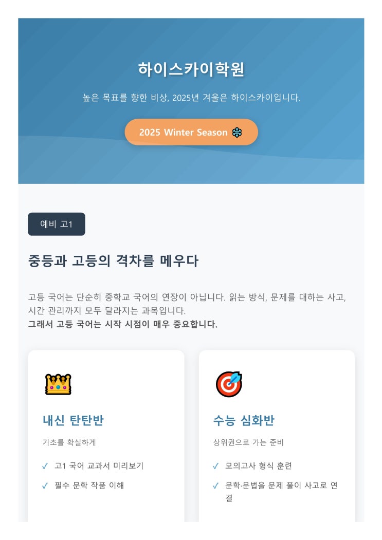 하이스카이 학원 겨울방학 특강 국어