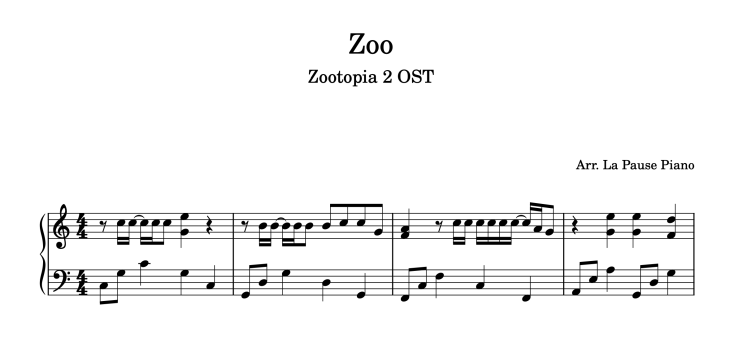주토피아 2 OST ZOO 피아노 버전 악보 무료 나눔 체르니 ver. [명지초 명문초 명원초 피아노]