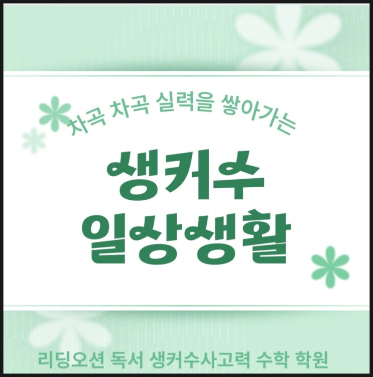 출발하게 만드는 힘이 동기라면 계속 나아가게 하는 힘은 습관이다. 설렘 가득한 마음으로 새 학기를 시작한 게 엊그제 같은데 어느덧 3월이 끝이 보이고 차갑던 바람은 봄 내음 가득 안고 길가의 벚꽃들을 활짝 피웠습니다. 하루하루를 저축하듯 차곡차곡 노력해온 날들이 있었기에 우리 아이들 마음에도 자신감이라는 꽃이 활짝 피어나고 있으리라 생각합니다. "삶을 최대한으로 살아라. 왜냐하면 미래는 조금씩 줄어들게 될 것이기 때문이다."라는 말을 깊게 공감합니다. 제가 가르치는 아이들의 미래를 생각하면 1시간. 아니 1분도 허투루 쓸 수 없습니다. 그래서 생커수에서의 수업은 시간을 엄수해야 하며 수업 시간에 잡담을 허....... <img src="https://blogthumb.pstatic.net/MjAyNjAzMzBfNjQg/MDAxNzc0Nzk2NTcyNTMz.DEaIYgFDWlVTD5cEbZ5hRxhg_JrFw-qcK1bQ0u97bZgg.jZMuUp1UtpzLYslLzdAA74EVY2iAlh9sbdbsdhYNyLcg.JPEG/Screenshot%A3%DF20260329%A3%DF230133%A3%DFNAVER.jpg?type=s3" />
