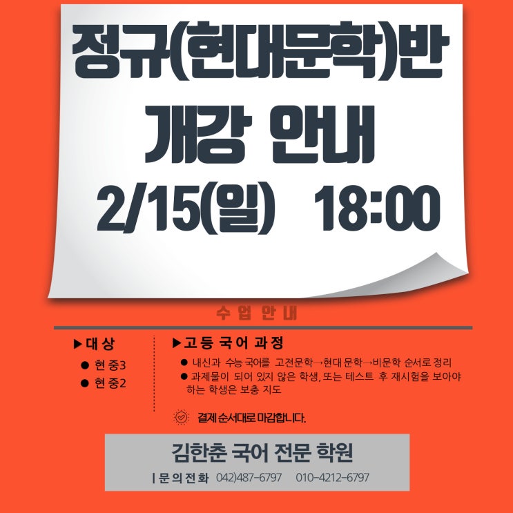 [정규반 개강] 1월 정규(현대문학)반 개강 안내