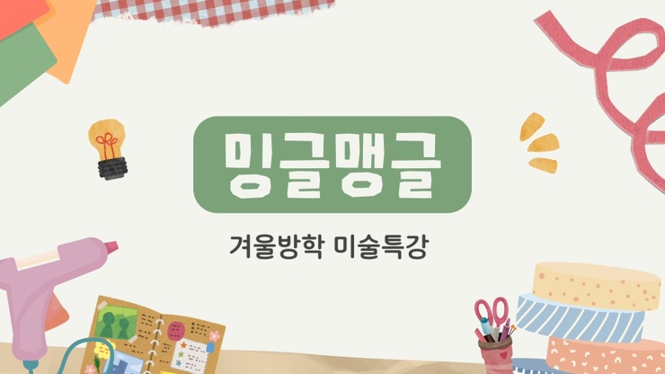 울산 미술 겨울방학 특강 안내 울산 삼산동의 아트하고 감각적인 미술학원 밍글맹글입니다. 겨울방학은 아이들에게 평소보다 여유로운 시간 속에서 새로운 경험을 해보고 손으로 만들고, 그리고, 표현하면 자기만의 즐거움을 발견할 수 있는 소중한 시기예요. 그래서 이번 겨울방학에는 ’만들기, 그리기, 표현하기‘가 균형 있게 담긴 미술 특강을 준비했습니다. 하루 체험으로 끝나는 수업부터, 조금 더 깊이 있게 이어지는 클래스까지 아이의 성향과 연령에 맞게 선택하실 수 있어요! 알록달록 티코스터 만들기 원데이 클래스 (8세 이상) 실과 색을 활용해 직접 짜보는 티코스터 만들기 수업입니다. 손의 힘과 집중력을 자연스럽게 키우....... <img src="https://blogthumb.pstatic.net/MjAyNjAxMDlfNDkg/MDAxNzY3OTQ4ODE3OTgz.tcnOWwSZ_RazqYuXLJfU5D5WAwyonRNVS1eq6Por5CQg.LlqFHPDYnxviD3wjUh1mZdYeg8zQQyPF_DHEYV6B-K8g.JPEG/IMG%A3%DF3099.JPG?type=s3" />