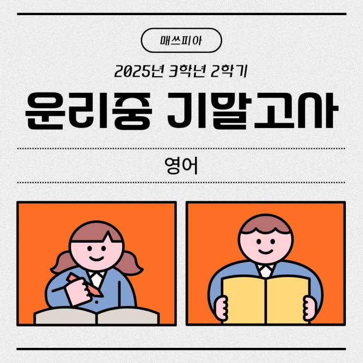 광주 금호동 영어학원 운리중 3학년 기말고사 출제 경향 안녕하세요, 매쓰피아입니다. 어느덧 2025학년도 3학년 2학기 기말고사가 마무리되었습니다. 중학교에서의 마지막 시험이라 우리 학생들도, 학부모님들도 긴장 많이 하셨을 텐데요. 운리중학교 3학년 영어 시험, 과연 어땠을까요? 매쓰피아에서 따끈따끈한 시험지를 분석해 보았습니다! 운리중 출제 경향 성실함이 곧 점수다 이번 운리중 시험을 한 줄로 요약하자면 교과서에 충실한 평이한 시험입니다. 학생들을 당황하게 만드는 꼬아낸 문제나, 교과 외 지문은 거의 없었습니다. 학교 수업 시간에 배운 내용을 얼마나 성실하게 공부했는지, 그리고 그 내용을 실수 없이 풀어낼 수 있는지....... <img src="https://blogthumb.pstatic.net/MjAyNTExMjZfMjIz/MDAxNzY0MTM5MjgxOTIx._9GfRUqAF6GAUrxbUqnYnUgm_bmzZNmwC55LQvXxjNsg.9vabCULCZ8jRrk2ms06s7Rz0_lEo4R5qgxqETcqZwIEg.JPEG/1.jpg?type=s3" />