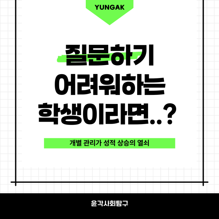 질문 어려워하는 학생이라면..? 개별 관리가 성적 상승의 열쇠 안녕하세요! 사회탐구 1등급을 현실로! 광주 봉선동 윤각사회 탐구입니다. "모르는 건 물어보고 싶은데, 어딘가 창피해요..." " 이런 것도 물어봐도 되나 괜히 눈치가 보여요..." 수업 시간, 이해가 되지 않아도 주변 친구들의 눈치를 보느라 선뜻 손을 들지 못하는 학생들이 의외로 정말 많아요. 대부분 이런 학생들은 홀로 공부를 해도, 무조건 '암기 위주'로 학습했을 가능성이 큽니다. 최근 사회 탐구 과목은 단순 암기를 넘어 철저한 이해 중심의 문항이 필수가 되었습니다. 그러니 모르는 걸 오히려 더 질문해서 내 것으로 만드는 과정이 꼭 필....... <img src="https://blogthumb.pstatic.net/MjAyNjAyMDNfOTkg/MDAxNzcwMDkwMzMxMzU0.s9vYfxq7NntJcbApBQ3dH7RWb6mTneFUF2lpiDsdb-sg.PAHmhB8ryHawgCEpmBbZi8qm76cQPBgY2HLy_oKoxWAg.PNG/026-1.png?type=s3" />