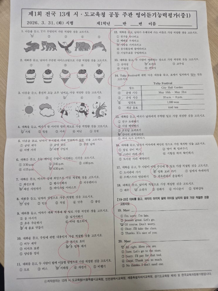 천상중 듣기평가