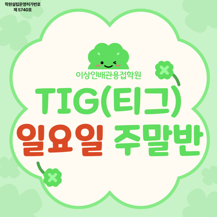 안녕하세요. 울산국비용접학원 이상인배관용접학원입니다. 오늘 소개해드릴 개강소식은 티그파이프 배관용접을 배울 수 있는 일요일 5일과정 티그(TIG)용접 단기과정입니다! ✅ 티그용접을 연습하고 싶으신데 평일에는 근무+잔업으로 바쁘신 분! ✅ 기존 아크/CO2용접은 해보셨는데 티그용접을 새로 배워보고 싶으신 분! ✅ 타지역이라 평일저녁반은 어려운신 분! ✅ 짧은 기간 안에 집중해서 티그 파이프 용접을 익히고 싶으신 분! ✅ 티그용접이 처음이라 한 번 배워보고자 하셨던 분! 과정명 가스텅스텐아크용접 주말단기과정 수업일정 2026-04-26(일) ~ 2026-05-24(일) 매주 일요일 수업/총 5일과정 수업시간 09:30 ~ 18:20 1일 8시간 / ....... <img src="https://blogthumb.pstatic.net/MjAyNjA0MDNfMzAg/MDAxNzc1MTk3ODgzOTMw.woTiXmF8Qd-5goizgUUvX_RlP9wP3Ac8fLBK-goKVK8g.mWxPemvp1WaeUuXKY3mg0RQXWxIPXql8bVUC_O3OwTkg.PNG/1.png?type=s3" />
