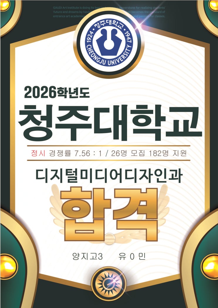 [세종시입시미술학원]2026학년도 청주대학교 디지털미디어디자인과 정시모집 합격!!