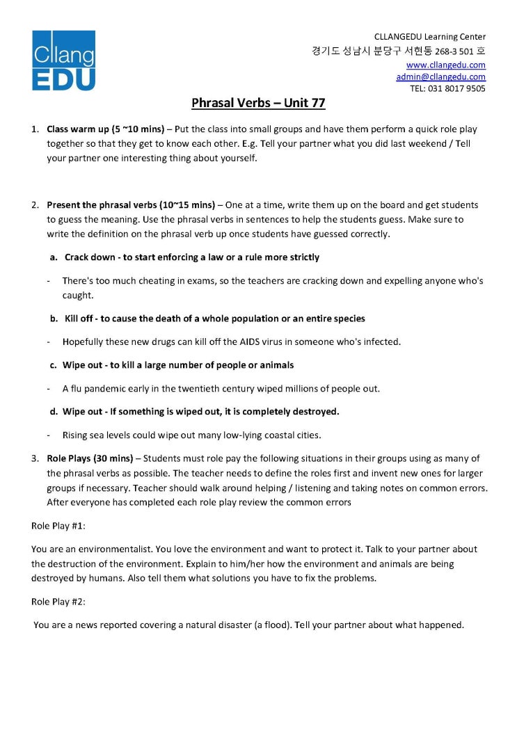 04월 06일 월요일 [9AM] Free Class / Phrasal Verbs