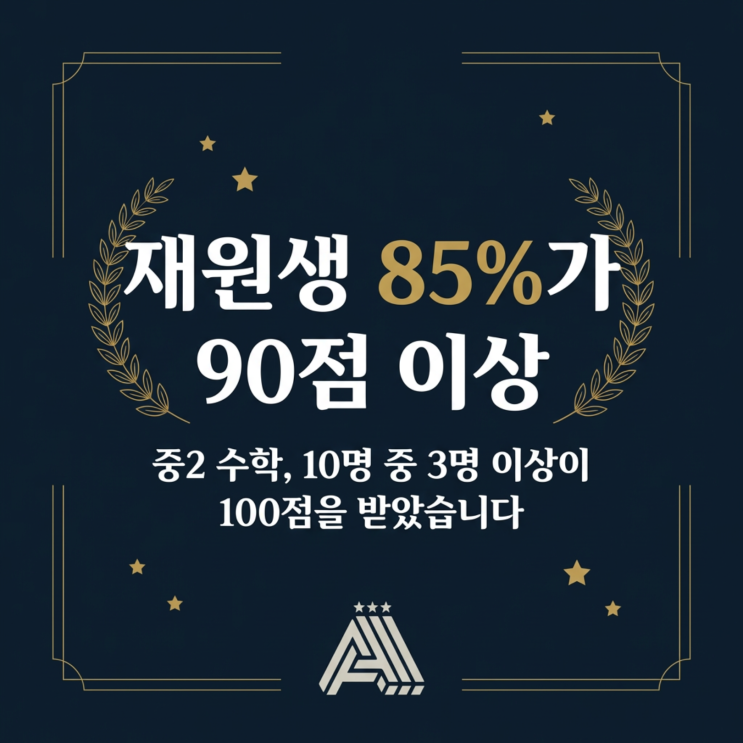 수내 수학학원 중2수학, 재원생 85%가 90점 이상을 받았습니다-우수자명단