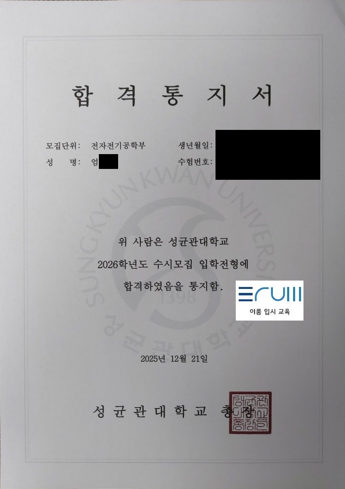 분당 논술학원 수리논술 합격수기 『이룸 입시교육 김용석 CLASS』 【성균관대】 전자전기공학부 엄OO(죽전고) / 분당 논술 면접학원추천 입시컨설팅 분당대입논술 수능국어 영어 수학