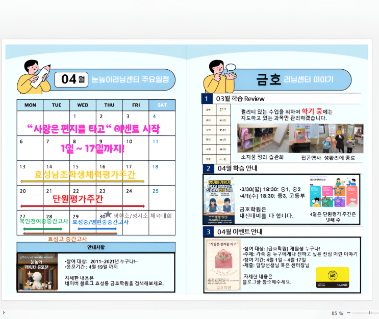 [공지] 금호 눈높이러닝센터 4월 주요 일정 및 소식 안내