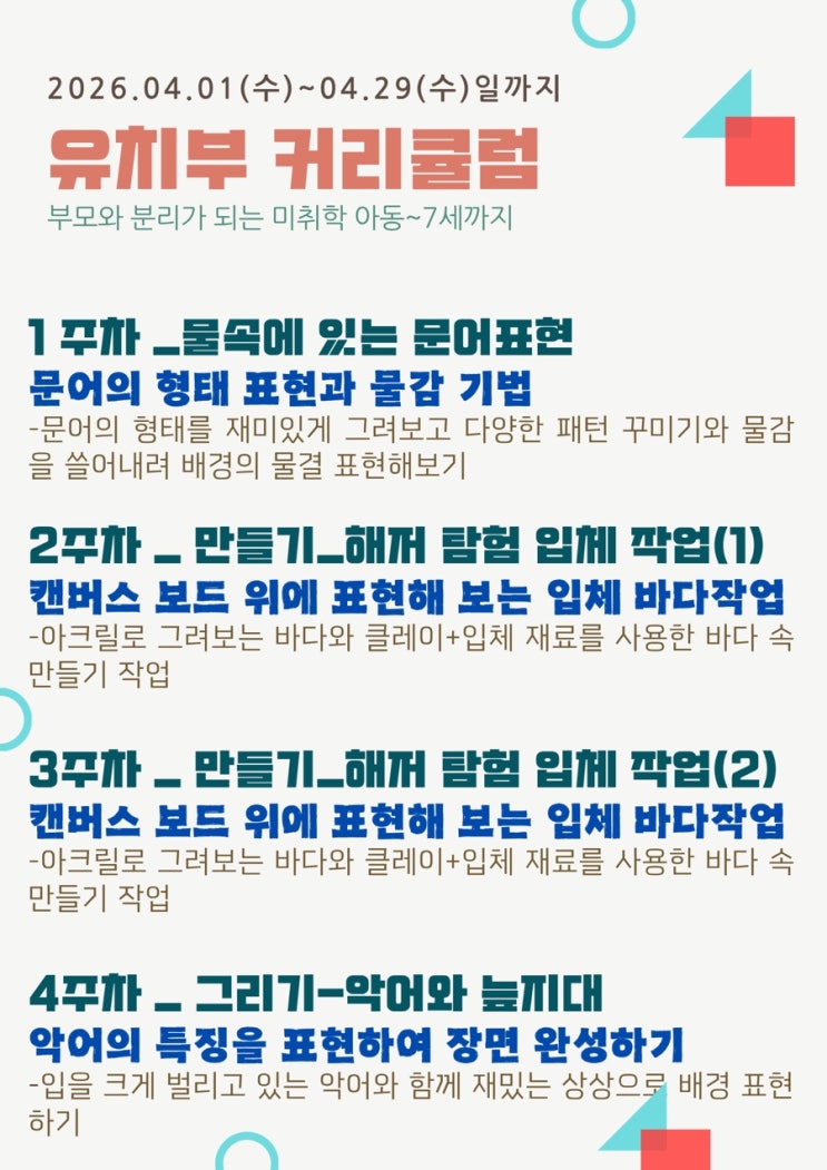[안양평촌호계동미술학원]아티움미술_유치부 26년 4월 커리큘럼
