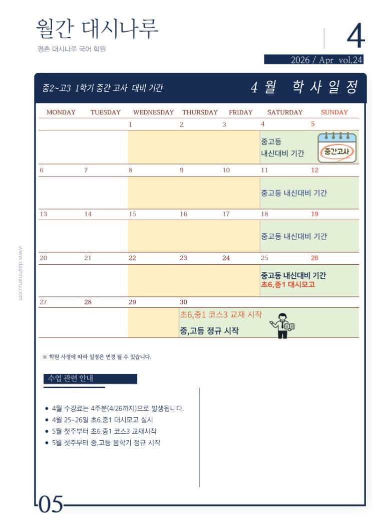 2026 대시나루 4월 학사 일정
