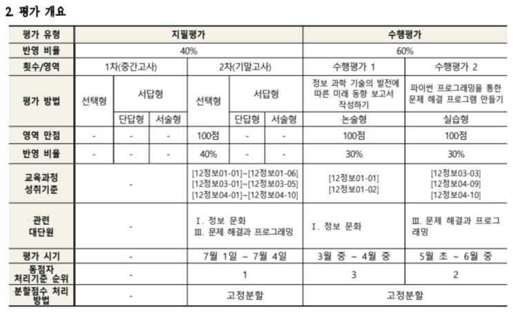 안녕하세요. 새로운 학기가 시작되어 고등학교 1/2학년 정보과목/인공지능 기초 과목의 내신 및 수행평가 문의가 많아 현재 디랩에서 진행하는 고등학교 정보 내신 수업을 안내드립니다. ✅ 학교별 정보 및 인공지능 과목 안내 대구 수성구 지역의 고등학교는 보통 1학기 정보수업, 2학기 인공지능 수업으로 이루어집니다. 학교마다 수업시기가 다른데 1학년때 하는 학교가 있고 2학년때 수업을 진행하는 학교가 있습니다. 또한 2학년 또는 3학년 때는 선택과목으로 인공지능수학 과목도 선택이 가능합니다. ( 선택 과목에 따라 세특을 연결할수 있기 때문에 의/공대는 인공지능 수학을 선택하는 학생이 늘어나고 있습니다.) 1학년 정보/인공지능....... <img src="https://blogthumb.pstatic.net/MjAyNjA0MDFfMjg0/MDAxNzc1MDIyNDI4MTU1.OPdzqSQT_msyCxV4CBZi6j4KY64koy_UxWQaaNop9cog.7Jx1krsGLzWqQNzQ2YhiQgEjpSrCxzTETWMaZN1D1L0g.PNG/%BD%BA%C5%A9%B8%B0%BC%A6_2026-04-01_%BF%C0%C8%C4_2.47.05.png?type=s3" />