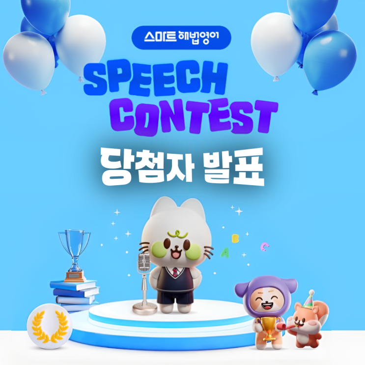 제 5회 스마트해법영어 스피치 콘테스트 수상 발표 안녕하세요. 스마트해법입니다. 제5회 스마트해법영어 스피치 콘테스트가 성황리에 마무리 되었습니다. 그동안 꾸준히 준비하고 열심히 연습해 온 우리 해법이들, 정말 정말 수고 많았어요! 또박또박 자신의 생각을 영어로 표현하는 모습, 긴장 속에서도 끝까지 최선을 다하는 모습 하나하나가 큰 감동이자 기쁨이었습니다. 해법이들의 한 명 한 명의 스피치를 들으며 아이들이 얼마나 성장했는지 다시 한번 느낄 수 있었던 뜻깊은 시간이었습니다. 내년에는 더욱 자신감 있고 멋진 모습으로 다시 만날 해법이들을 기대합니다. 그럼 지금부터, 이번 스피치 콘테스트 영광의 주인공들을 소개합니....... <img src="https://blogthumb.pstatic.net/MjAyNjAyMDVfMjE0/MDAxNzcwMjc1MTQ3Njky.R6UycMDlIAtRkdzNMlMmCOvC---CrT_bCYPFCQ_wqIwg.4GNHk0MfhaROG3uyIDfvSy3KwwAXuQ11mrb0nswEHesg.PNG/%C1%A6%B8%F1%C0%BB_%C0%D4%B7%C2%C7%CF%BC%BC%BF%E4_%285%29.png?type=s3" />
