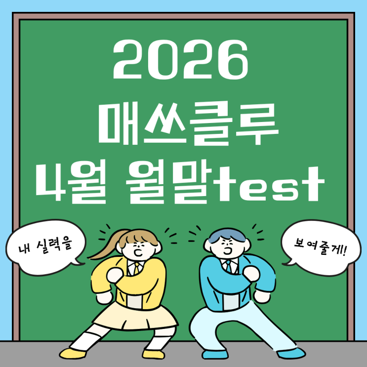안녕하세요. 차별화된 경쟁력을 약속하는 화정 수학학원, 매쓰클루학원입니다. 벚꽃이 하나둘 피어나며 봄이 성큼 다가왔음을 느끼게 하는 요즘입니다 따뜻한 바람 속에서 새로운 시작과 변화를 떠올리게 되는 4월, 학생들의 성장 또한 그 계절처럼 차분히 이어지고 있습니다! 저희 학원은 2월 초 월말 TEST 이후, 3월 수업을 거쳐 4/2(목) 부터 4/4(토) 3일간 다시 한 번 월말 TEST를 진행하여 방학 특강과 정규 수업을 통해 쌓아온 학습의 성과를 점검하는 시간을 가졌습니다 ✨ 학년 상승과 함께 학습 난도가 높아진 만큼, 이번 테스트는 현재 실력을 객관적으로 확인하고 우리 학생들이 향후 학습 방향을 설정하는 기준이 될 겁니다. 이....... <img src="https://blogthumb.pstatic.net/MjAyNjA0MDRfMTI5/MDAxNzc1Mjk0Mjg5ODI2.Sk_aGsj_QcV0PjWluVcJDRNJcXhzi6ixkumn56KOTUYg.kdtnNbk5p4-4FHv-8is0yMlJDGdZryWEBIXDqBI7mo0g.PNG/%3F%A0%9C%EB%AA%A9%EC%9D%84_%3F%9E%85%3F%A0%A5%3F%95%B4%EC%A3%BC%EC%84%B8%3F%9A%94..png?type=s3" />