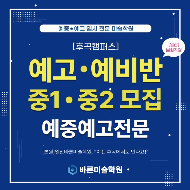 ★<일산 바른미술학원> 2027학년도 예고 예비반 중1, 중2 모집 안내!!★[일산/후곡/주엽/대화/탄현/운정 미술학원]
