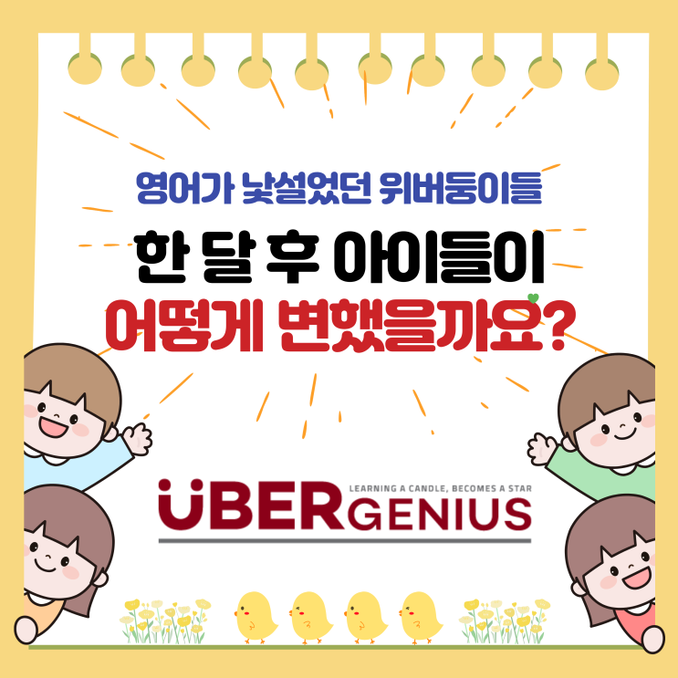안녕하세요. 처음부터 다른시작 위버지니어스 시흥원입니다 :) 오늘은 3월 한 달 동안 아이들과 함께 지내며 느꼈던 소중한 변화들을 공유드리려고 합니다. "영어가 낯설었던 위버둥이들" 3월, 처음 만난 위버둥이들의 영어 노출의 경험은 저마다 달랐습니다. 영어를 거의 접해본적 없는 친구도, 조금씩 경험이 있는 친구도 함께 한 반을 이루었으며 처음에는 알파벳도 낯설어 하고 영어표현도 어색해하는 모습이었답니다. 그런데 그 서로 다른 출발점이 오히려 서로를 배려하며 함께 성장하는 우리 반만의 따뜻한 분위기를 만들어 주었어요 "다양한 활동 속에서 마음을 열기 시작했어요!" 3월 한 달 동안 아이들은 알....... <img src="https://blogthumb.pstatic.net/MjAyNjAzMjdfMjUg/MDAxNzc0NTc1Njc4MDYz.ZyIx-J2mUhln0r-EggkbJzFNyyEUMrx4G2LbhQjHVVcg.0R_7c0qGMZChd_jftDKyDqma-R5esH4wUj5f-5CKom0g.PNG/%C1%A6%B8%F1%C0%BB_%C0%D4%B7%C2%C7%D8%C1%D6%BC%BC%BF%E4._%284%29.png?type=s3" />