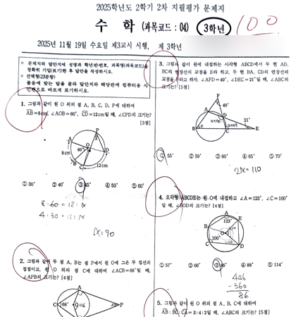 인근 학교 내신이 다 끝났습니다. 11월 중하순에 중3 학생들 내신에 이어 거의 한달 반 내신 기간이었습니다. 이번에도 우리 뿌교 학생들 좋은 성적을 보여줬습니다. 일찍히 11월에 기말고사를 마친 중3학생들은 곧바로 고1 선행을 달리고 있습니다. 이번에 시험이 끝난 고등학생들, 중1/중2학생들도 시험이 끝나고 곧바로 선행 대비하기 시작했습니다. 중2 학생들도 국영수 평균이 90점을 넘어서는 좋은 결과를 보여줬어요. 중2, 중3 학생들 국어, 영어에서 90점이 넘었습니다. 중3 한 여학생은 중2 1학기 중간고사 때 수학 포기 갈등을 겪다가 저희 학원에 왔는데 지금은 40점 이상 올라서 튼실하게 공통수학 내신 대비 실력을 쌓고 있습니다. ....... <img src="https://blogthumb.pstatic.net/MjAyNTEyMjNfMjMx/MDAxNzY2NDYyMDE5OTc1.ecC5KN4Wt2OCHeTdTGI-XiOzL00sFB8Cft7K-fC8VLcg.CLY4yXE3uykFqESaluUV7evR-oHroT59sHpF0tDfON8g.PNG/%C8%AD%B8%E9_%C4%B8%C3%B3_2025-12-23_124902.png?type=s3" />