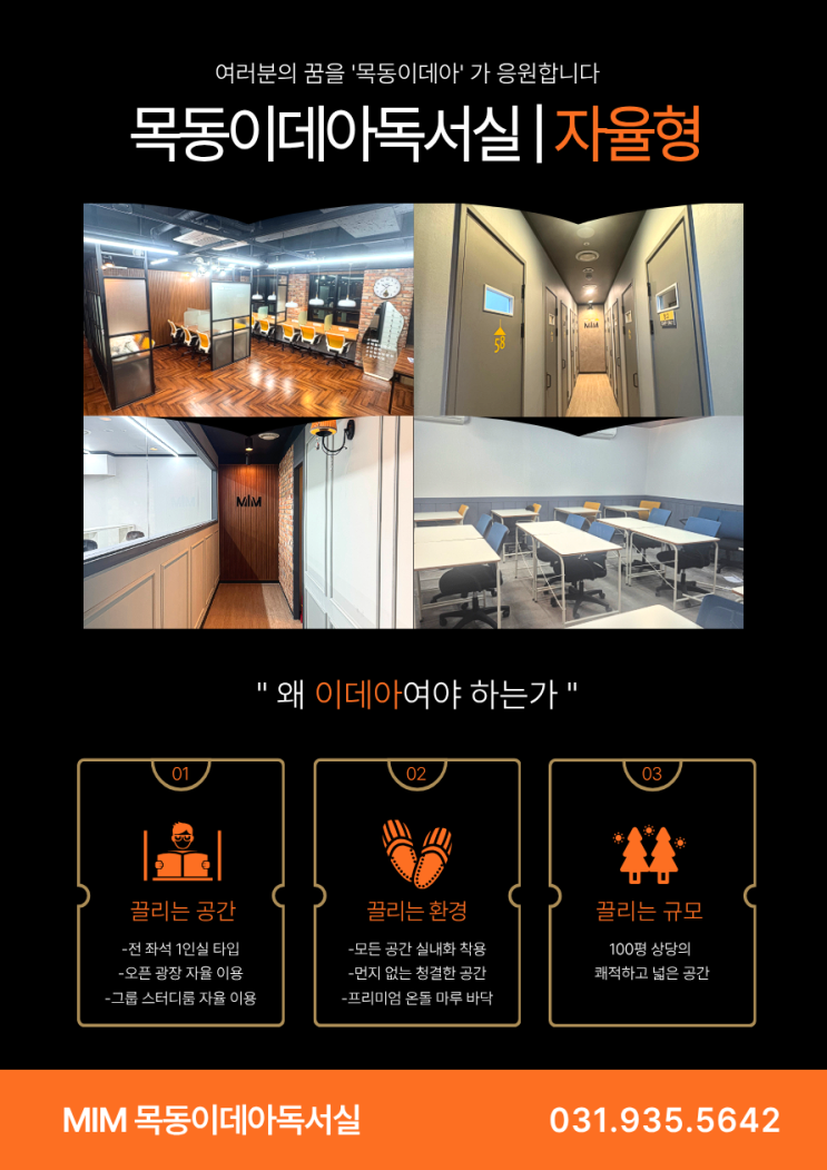 [목동이데아수학] 대치 목동 30년의 노하우로 80평 관리형/자율형 독서실 오픈!