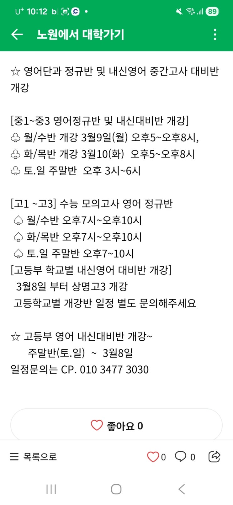 [중계 미라정영어학원] 3월 1일(일)~3월 4일(수) 휴원 안내