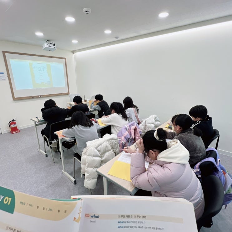오늘은 셀린영어학원에서 새로 개설된 초등 5학년 반의 첫 수업 날이었습니다. 새로운 반이 시작되는 날은 언제나 조금 특별합니다. 아이들도 새로운 친구들과 새로운 수업에 대한 기대감이 있고, 저 역시 어떤 분위기의 반이 만들어질지 설레는 마음으로 수업을 시작하게 됩니다. 첫날이라 그런지 아이들 표정에서 약간의 긴장과 호기심이 함께 보였습니다. 하지만 수업이 시작되고 문제를 풀기 시작하자 금세 집중하는 모습이었습니다. 사진 속에서도 보이듯이 아이들이 각자 자리에서 차분하게 문제를 풀며 수업에 집중하는 모습이 참 기특했습니다. 새로운 반이지만 서로 방해하지 않고 자신의 문제에 집중하는 모습에서 앞으로 이 반이....... <img src="https://blogthumb.pstatic.net/MjAyNjAzMDdfMjUx/MDAxNzcyODQ2ODE3NDY4.5Jlppgwgr8K8htnlMrd7psxI09iRr5lIBebVf0sNH-Yg.JWPI-6-wwK_hr7tR92b8TGHDipApFjeFglMyDcXV_gkg.JPEG/IMG%A3%DF4970.JPG?type=s3" />