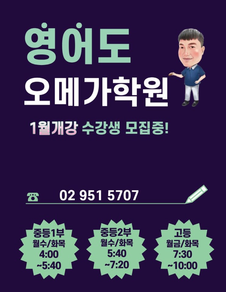 1월에 오메가에서도 영어를 시작 했습니다. 수학 명문 오메가 학원에서 수강생들을 위해서 수학 뿐만 아니라 영어도 함께 시작 하게 되었습니다 1월에 시작으로 현재 겨울 특강과 고등부 정규 수업을 진행 중에 있습니다. 다년간 대치동과 중계동에서 영어 입시를 맡아 왔던 20년 강의 경력을 가진 영어과 원장님과 함께 과감하게 시작한 "오메가 영어" 현재 겨울 특강과 정규 수업으로 많은 호응과 관심을 받고 있습니다. 역시 수학 명문 오메가 영어도 명문이죠 !!!!!!! 이번에 예비고1 대상으로 오메가 영어에서 학부모 간담회를 실시 합니다. 많은 예비고1 학부모님들의 참여를 바랍니다. 오메가 영어의 차이를 와서 느껴 보세요 ^....... <img src="https://blogthumb.pstatic.net/MjAyNjAxMzBfMSAg/MDAxNzY5NzUyNDEwMTE3.IcYv1yBzcDkhgg-AOAJS_xXW6yY4HONdsUHzb3C9bxkg.6cMZmHi1gM7VypgZNaD5K55PhdohF6y2ean1lGi4UcIg.JPEG/%BF%B5%BE%EE_%B0%B3%B0%AD_%C6%F7%BD%BA%C5%CD_-_%C4%B3%B8%AE%C4%BF%C3%C4_%C6%F7%C7%D4.jpg?type=s3" />