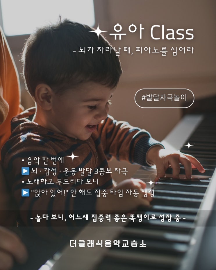 피아노, 언제부터 시켜야 할까요?” 고민하는 순간이 바로, 시작하기 좋은 타이밍입니다. 학부모님이 정말 많이 하시는 질문이 있어요. "유치원 때부터 시켜야 하나요?" "초등인데 이제 시작해도 될까요?" "중·고등인데 너무 늦은 거 아니에요?" "성인·시니어도 배워도 의미가 있나요?" 정답은 하나입니다. 지금 이 나이, 지금 이 타이밍이 바로 피아노 시작 시기입니다. 다만, 연령에 따라 '왜 필요한지'와 '어떤 효과가 있는지'가 다를 뿐이에요. 그래서 저희는 연령별로 이렇게 나누어, 맞춤 피아노 레슨을 진행합니다. 유아반 - 뇌가 폭풍 성장할 때, 피아노를 심어....... <img src="https://blogthumb.pstatic.net/MjAyNjAyMDVfMTAx/MDAxNzcwMjkzMjE2Mzgz.gJuSlWD7mIJB1M2uDXWIQWJBDlej74bVLW8KSn9tX8Yg.ZxbKHVL6MEy5a1VzIqwh8CgmP_jyrwd3GKSj9Ecsw18g.JPEG/IMG%A3%DF0903.JPG?type=s3" />
