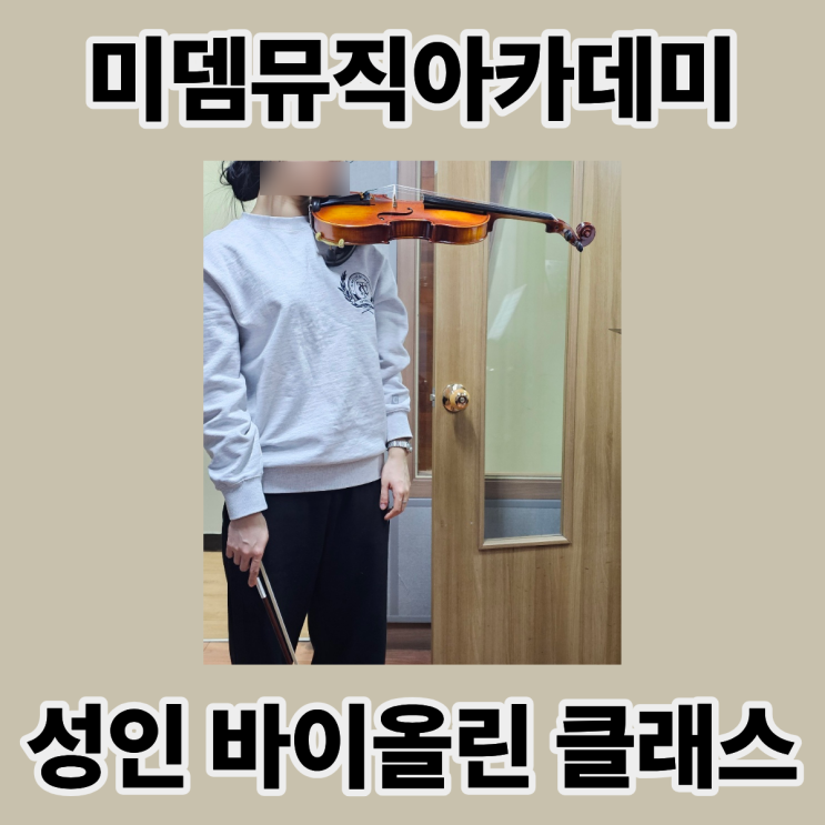 안녕하세요. 음악의 명문, 미뎀뮤직아카데미 입니다! 오늘은 성인분들을 위한 바이올린 클래스에 대해 전해드리려 합니다. 미뎀뮤직아카데미 서울 은평구 연서로 27길 25-1 2층 월 - 금 13:00~ 22:00 (토,일 휴무) ☎️02- 353- 2552 Kakao ID : midemmusic 카카오채널 : '미뎀뮤직아카데미' 친구추가 상담문의는 카카오채널/네이버톡톡/전화,문자 가능합니다^^ 악보를 볼 줄 모르는데 수업이 가능할까요? 악보를 보지 못해도 가능합니다 실제로 많은 성인 초보자가 악보를 모르는 상태에서 시작합니다. 미뎀에서는 바이올린을 처음 배우는 성인분들도 쉽게 시작할 수 있도록 기초 자세부터 간단한 멜로디 연주, 그리고 기....... <img src="https://blogthumb.pstatic.net/MjAyNjAzMTZfMjk2/MDAxNzczNjY2MDU5MDgz.KWXxCVNZ4z9Yz7dkWwXfqNatbn-kXnNqa5evAuXl51wg.AsYnk89oifuGiTed-2o0kR0vbo1R9rPL0QkpwVEj73Eg.PNG/%C1%A6%B8%F1%C0%BB_%C0%D4%B7%C2%C7%D8%C1%D6%BC%BC%BF%E4._%2838%29.png?type=s3" />
