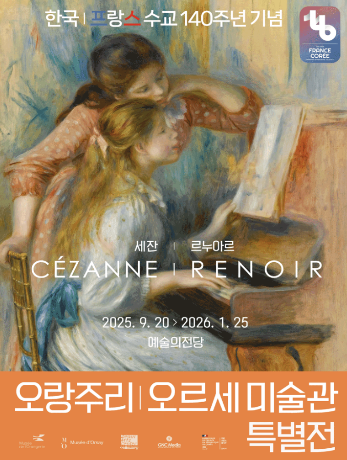 안녕하세요! 서대문바른이에요. 오늘은 인기리에 전시중인 예술의전당 전시 소식을 전해드리려고합니다. 오랑주리 - 오르세미술관 특별전 : 세잔, 르누아르 기간 2025-09-20(토) ~ 2026-01-25(일) 시간 10:00 ~ 19:00 (※ 매주 월요일 휴관) 장소 한가람디자인미술관 제1전시실, 제2전시실, 제3전시실 입장연령 전체관람 전시입장마감시간 18:00 가격 일반(만 19-64세) 22,000원 / 청소년(만 13-18세 이하) 18,000원 / 어린이(만 7-12세 이하) 15,000원 / 미취학 아동(만 4-6세) 12,000원 / 경로(만 65세 이상) 12,000원 주최 예술의전당, 지엔씨미디어 문의 02-325-1077 세잔 에 대해 자세히 알고 싶다면? 아래 링크 클릭하기 ▼▼▼▼▼▼▼ 폴....... <img src="https://blogthumb.pstatic.net/MjAyNTEyMTVfMTM3/MDAxNzY1Nzg0MjMzMjQ1.fZ0lOfO0ZQgI5-Jv1VYVy81dZeru8Zpm1O5qY_Misqsg.EfWtrFcC2nRUuWd-NIpyukQf1FJb_vbdQNi5CjS0Tlwg.PNG/image.png?type=s3" />