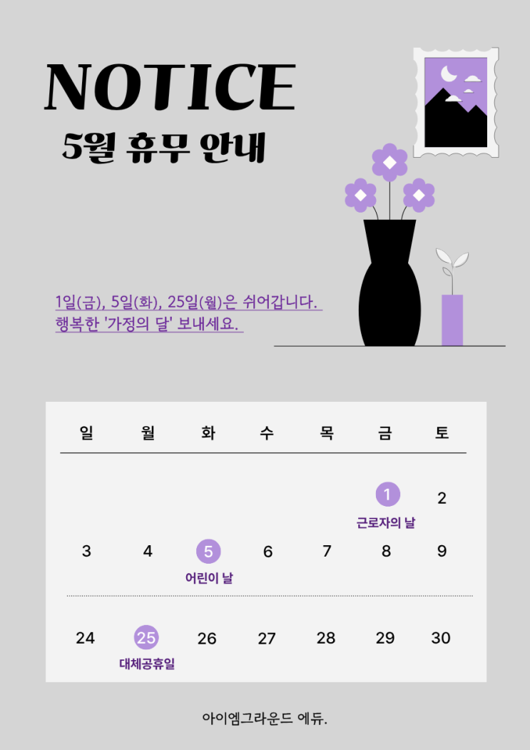 (신방화/마곡: 국어,논술학원) 아이엠그라운드, <5월 일정 공유>