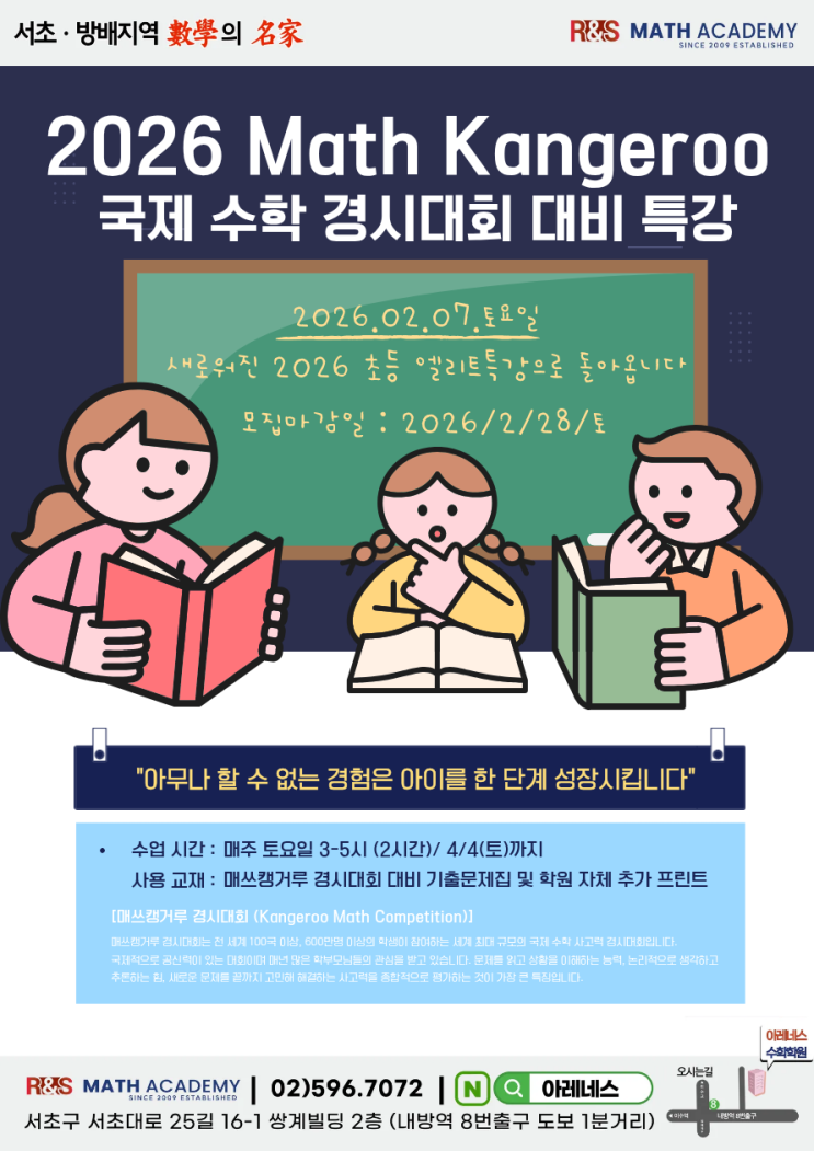 [서초/방배 수학학원] 2026 초등부 Elite 특강 : 매쓰캥거루 경시대회 대비반 개설 안내 (마감 임박!)