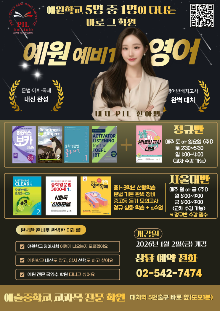 예원학교 신입생 필독! 예원학교 영어 예비중1 모집[반배치고사 대비까지 한번에]