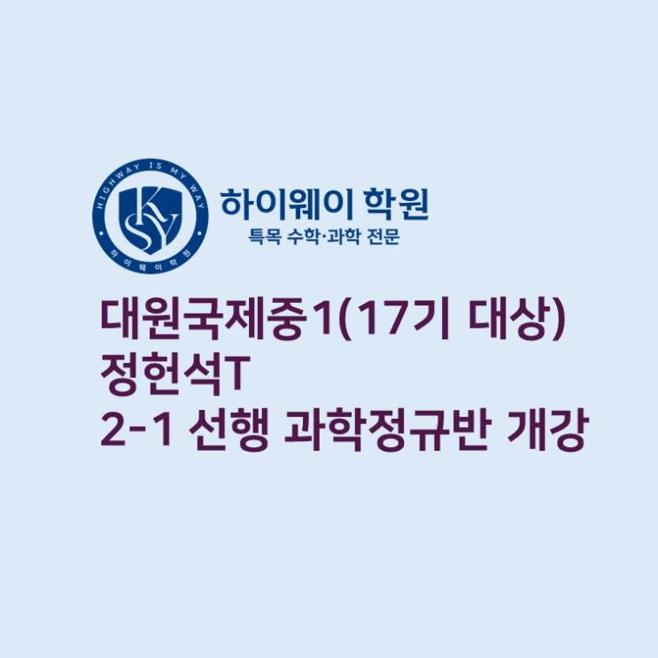 대원국제중 1학년(17기) 대상 과학정규반(2-1 선행) 개강 안내 !!확실한 성적 향상으로 입증된 정헌석T 대원국제중 과학 수업!! (대원국제중 기말 내신반 수강생 1,2학년 전원 고득점) 2학년 1학기 과학의 난이도는 1학년때보다 급격히 높아지며 짧은 기간에 중학교 전과정을 훑는 속성 수업으로는 중등내신, 나아가서는 고등과학 대비가 어렵습니다. 기말시험후 흐트러지기 쉬운 시기에 시작하는 2-1 과학 선행으로 알차게 새학년 준비하시기 바랍니다. 대원국제중 대상 과학 정규반 수업을 통해 평소에는 차근차근 진도나가는 과학선행, 내신기간에는 내신대비을 하는 투트랙 학습으로 과학선행과 내신, 두마리의 토끼를 잡으세요. 탄탄한 중등....... <img src="https://blogthumb.pstatic.net/MjAyNTEyMTlfOTgg/MDAxNzY2MTI5MzA2Mzcw.2gRwIL2-19uVHdv2QNIfv3vlogGmoNmHQp73-pZHjtEg.Q43MJtfSuD4Hfm17jerKwDK5GmZ2_r4YTPztqAyNFSYg.JPEG/%BA%ED%B7%CE%B1%D7_%B9%D9%C5%C1_%B5%F0%C0%DA%C0%CE_%C2%FC%B0%ED.jpg?type=s3" />