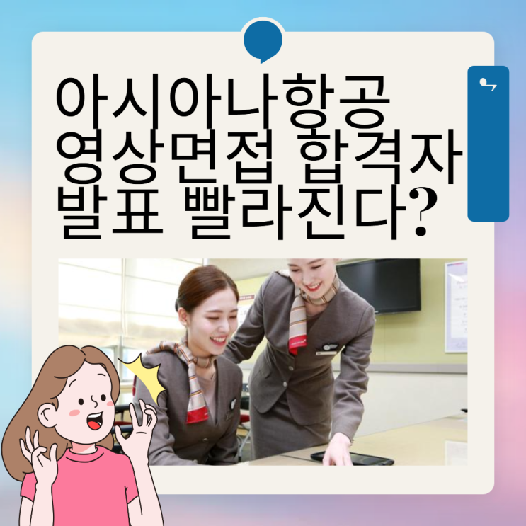 유현정강사 입니다. 아시아나항공 영상면접 합격자 발표가 다음주 아닐까 예상을 했었는데 그냥 학원가 강사들로부터 어쩌면 더 빨리 나올 수도 있다. 임원면접도 빨리 진행 할 수도 있다 라는 카더라가 나왔습니다. 그래서 예측대로 다음주가 아닌 더 빠른 시간안에 영상면접 합격자 발표가 있을 수 있고, 면접일도 빨라질 수 있다는 말이 나오고 있으니 일단 이 말이 맞을지 틀릴지는 모르겠지만 마음의 준비를 하고 있어야 할 듯 해요 정말 1만명이상이 기다리고 있는데 궁금합니다. 결과가 과연 빨리 나올지 모르겠습니다. 이번 카더라는 승무원 학원가 강사들로부터 나온 것으로 저는 정확히 믿어야 할지 잘 모르겠습니다. 데이타에 의한 분....... <img src="https://blogthumb.pstatic.net/MjAyNTEyMTdfMjU1/MDAxNzY1OTI0MTgzMTY5.56kmNrjlxLVBEHLgIvIkBa49kK5cHfV2YnljLUMHn3Eg.PKPNTptlBf-LDH8-kPXj1B3PxLL3VaL44NKYooKB48Qg.PNG/%C1%A6%B8%F1%C0%BB_%C0%D4%B7%C2%C7%D8%C1%D6%BC%BC%BF%E4_-003.png?type=s3" />