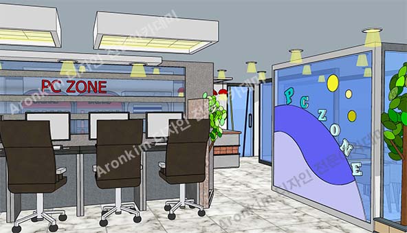 2026년 [실내건축기사]실기_ PC방 투시도입니다.