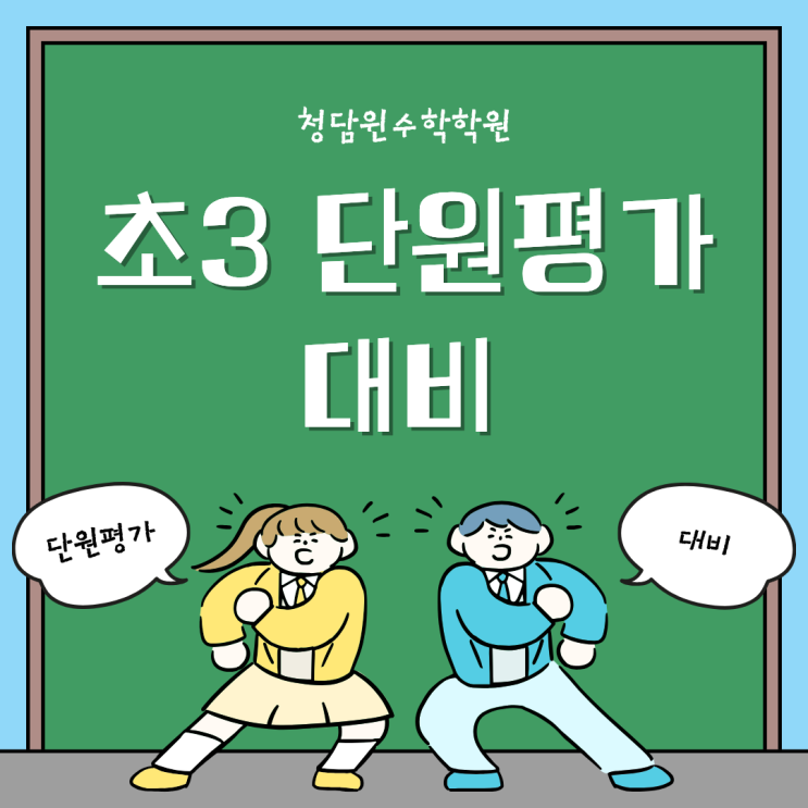 안녕하세요 초등 수학의 기초를 탄탄하게 잡아주는 청담윈수학학원입니다. 초등 3학년부터는 본격적으로 ‘수학의 개념 이해’가 시작되는 시기입니다. 단순 계산이 아닌 문제 이해력과 사고력이 중요해지기 때문에 단원평가 준비가 정말 중요해요! 오늘은 초3 학생들을 위한 ✔ 단원평가 대비 학습 방법을 소개해드립니다. 초3 수학, 왜 중요할까요? ✔ 처음 배우는 개념이 많아지는 시기 ✔ 분수, 길이, 들이 등 실생활 개념 등장 ✔ 문제 읽고 이해하는 능력이 핵심 이 시기를 놓치면 이후 학년에서 수학이 점점 어려워질 수 있습니다. 초3 단원평가, 이렇게 나옵니다! ✔ 개념 이해 문제 (기본 문제) ✔ 계산 문제 ✔ 서술형 문제....... <img src="https://blogthumb.pstatic.net/MjAyNjAzMjRfMjY2/MDAxNzc0MzM1NTgyMTQ1.JyzaqK3EN4tt4kmLZm2-F-QsFUMDc5DnmDhpZLby1qgg.t3KtfzeEyvkqE7m3l_ARDqIznB8ror0ADWMKlH7slP0g.PNG/0324_%C3%CA3_1.png?type=s3" />