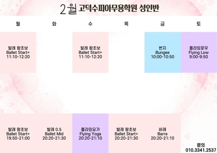 상일동 성인발레·바레·번지·플라잉요가까지|고덕수피아 2월 성인반 시간표 안내