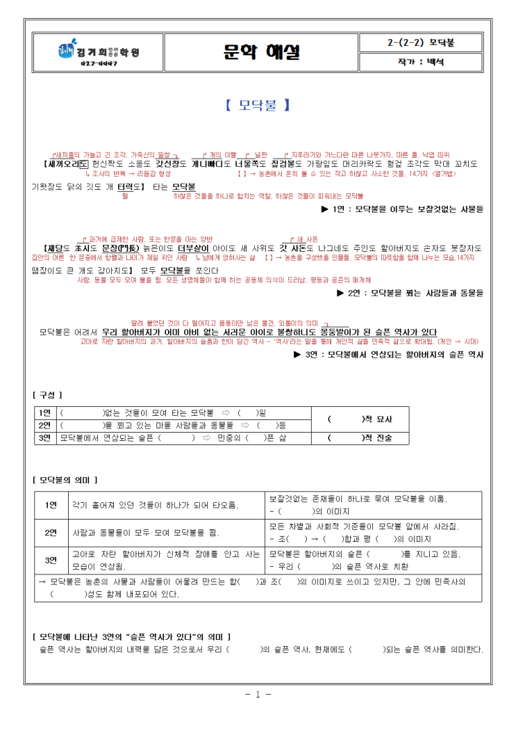 [ 미래엔 문학 해설 ] 【 모닥불 】 - 백석 ❚ 개관(槪觀) ❚ 보잘것없고 하찮은 것들이 모여 이룬 모닥불 차별없이 조화롭게 공동체를 이루며 모닥불을 쬐는 모습들 그 곳에 담겨 있는 아픈 역사 보잘것, 합, 모닥불, 평, 객관, 역사, 슬, 설명, 합일, 화, 화, 등, 역사, 민족, 이르, 화, 비극, 민족, 지속, 열거, 도, 대구, 나열, 조사, 대구, 토, 속, 문, 화, 공동, 공동, 상, 열, 속, 보조사, 역사 <img src="https://blogthumb.pstatic.net/MjAyNjAzMjZfMTI1/MDAxNzc0NTE3MDQwNzk5.ocnlK-20GgdUbXeDmZJ3iZ5sQwzN-3pjENkxD-cJ7vYg.HhIbWtONIH4ch3jByKUIyFhYCZP1yEpe3OwkoNO5haAg.PNG/2-%282-2%29_%B8%F0%B4%DA%BA%D2_%28%B9%E9%BC%AE%29_%C7%D8%BC%B3_%BA%ED%B7%CE%B1%D7%BF%EB001.png?type=s3" />
