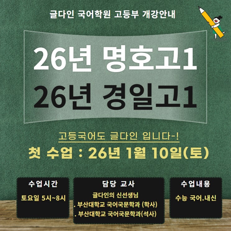 명지 고등국어학원 - 26년 고1반 개강합니다.