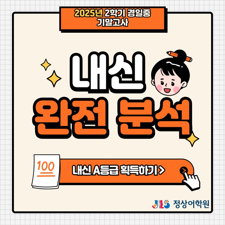 안녕하세요!^^ 정상어학원입니다. 이번 경일중학교 1학년 2학기 기말고사, 모두 고생 많았습니다. 특히 배점의 40%를 차지하는 서술형에서 정확한 문법과 영작 실력을 요구했기 때문에, 중간고사 때와 비슷한 느낌으로 공부했던 친구들은 점수 하락 폭이 컸을 수 있습니다. 정리한 '4가지 고득점 전략'을 보시니 어떤 생각이 드시나요? "이제 영어 공부가 만만치 않겠구나"라는 생각이 드셨다면, 정확하게 보신 겁니다. 특히 조건 영작'과 '문법 활용'이 강화된 이번 시험 트렌드는 2학년, 3학년으로 갈수록 더욱 심화될 것입니다. 1. 철저한 영영 어휘 학습 2. 원리를 꿰뚫는 문법과 서술형 훈련 3. 논리적....... <img src="https://blogthumb.pstatic.net/MjAyNTEyMTlfMjM5/MDAxNzY2MTQ5NTEzOTQ2.f0Bf2GlRQolcOvV8CZsro-gNw6ckkb7AxZnJnel8vfQg.WmdEMkqpZ7s2h5yX9A7T0DHX01o60iZL5w_lmqbNjIIg.JPEG/001.jpg?type=s3" />