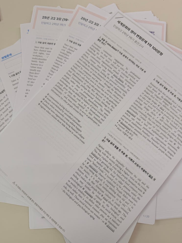 써밋 영어는 일요일에도 내신대비중입니다